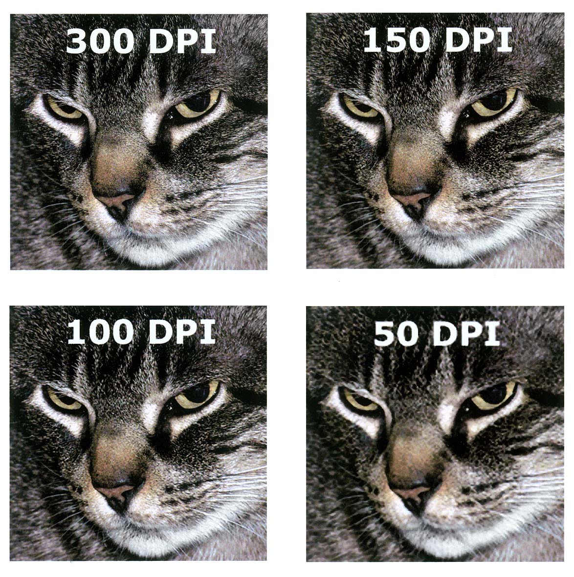 In our test, we saw the slightest of slightest increase in definition from 150 to 300 DPI, but, we saw a reasonable drop of quality at the 100 DPI resolution. It may be difficult to see here as your monitor is under 100 DPI and we shrunk it down to fit. Viewing at full-size will show the results better. A clear loss of quality was seen at 50 DPI and for the most part, is considered unacceptable.